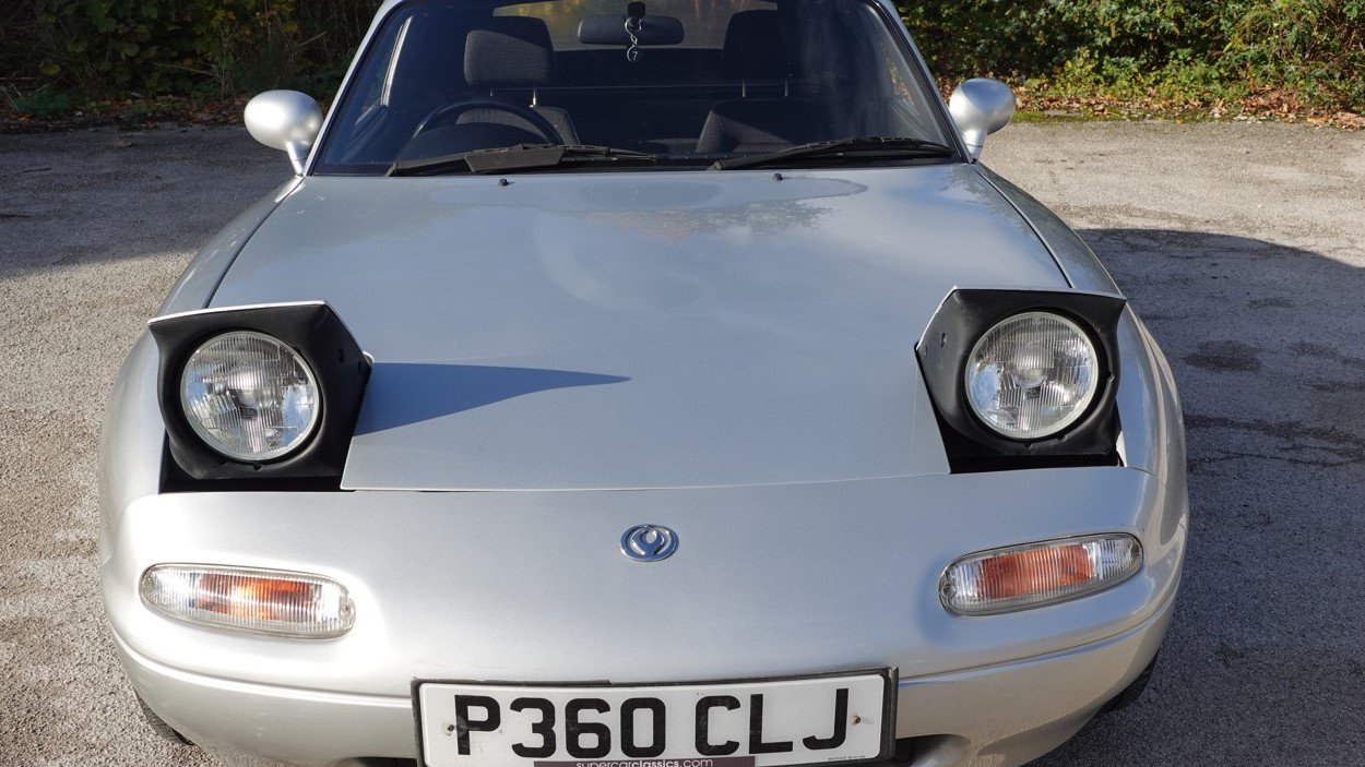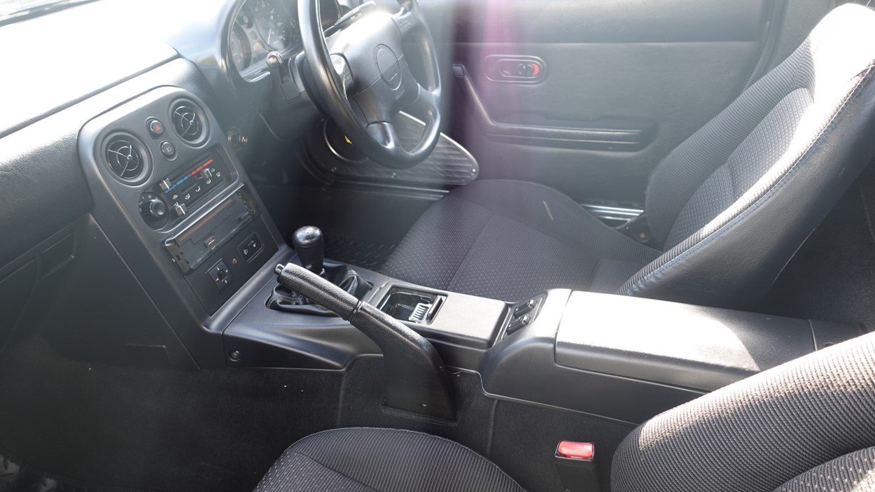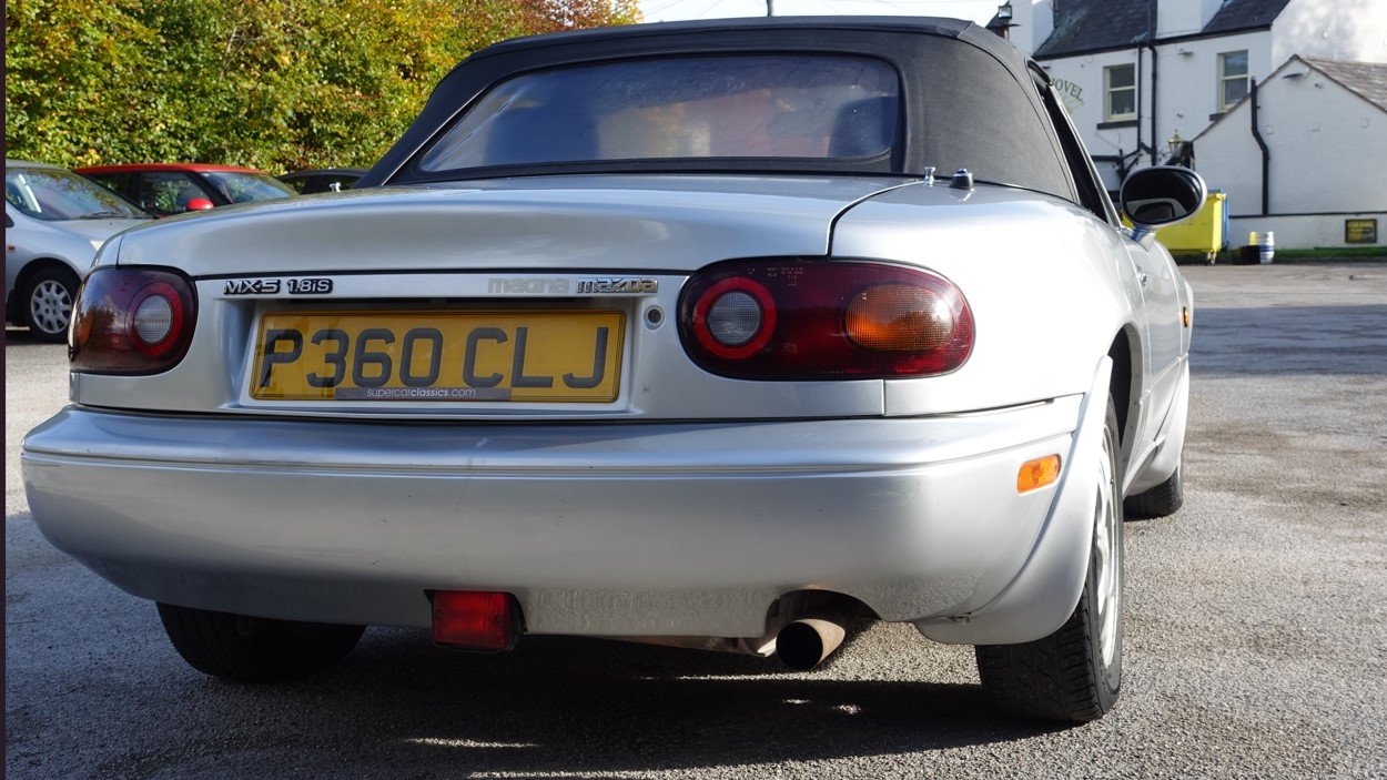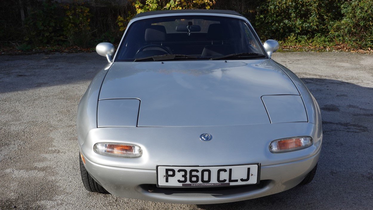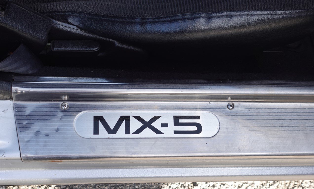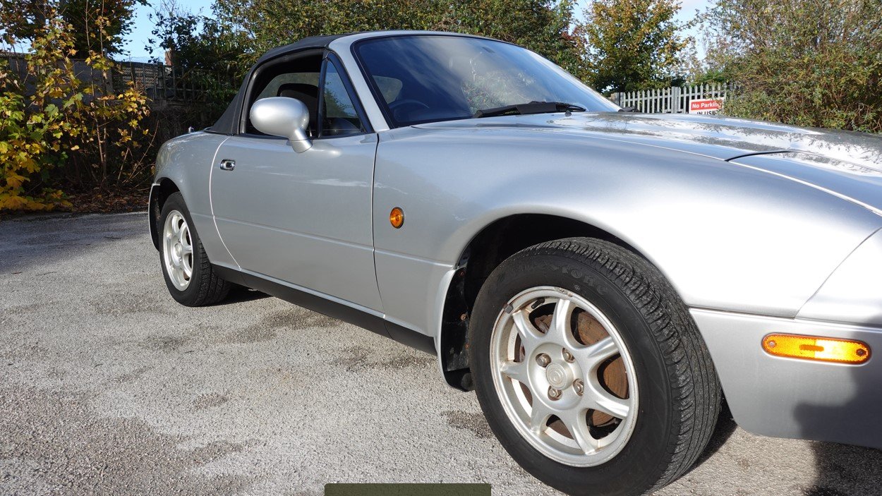 Finished in Silverstone, this model is the 1.8 iS. It has black cloth seats, 5 speed gearbox, power steering, limited slip differential, 14" alloy wheels, drivers airbag, electric windows, ABS brakes, CD stereo system and black hood. It has covered 58000 miles with service history and is in remarkably good original condition. Examples of the MK1 in this condition are becoming increasingly hard to find. We take any vehicle in part exchange, MX5 or other makes., Buy from a long established MX5 and Small car specialist in the North West.