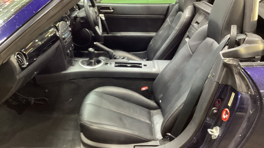 Finished in Stormy blue, this model is the 2.0 Option pack. It has black leather heated seats, 5 speed gearbox, climate control air conditioning, central locking with alarm, power steering, 16" alloy wheels, CD stereo system and black cloth hood. It has covered 58000 miles with service history. We take any vehicle in part exchange, MX5 or other makes., Buy from a long established MX5 and Small car specialist in the North West.