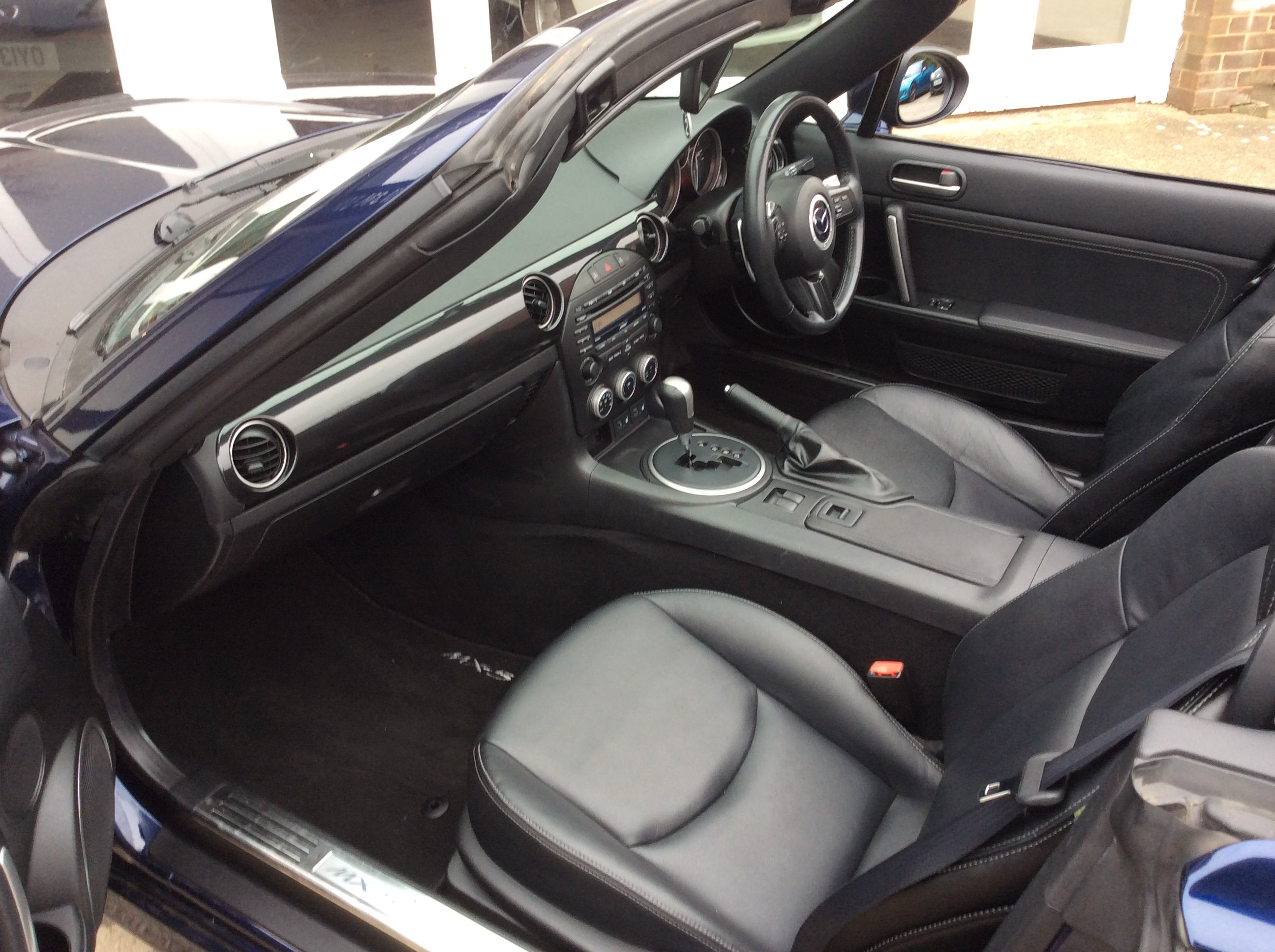 Finished in Stormy blue, this model is the 2.0 Powershift Coupe. It has heated black leather seats, automatic or paddle shift 6 speed gearbox, climate control air conditioning, limited slip differential, traction control, cruise control, central locking with alarm, power steering, 17" alloy wheels, Bose stereo system with Bluetooth phone and electric folding solid roof, which stows behind the seats so does not intrude on boot space. It has covered 99000 miles with service history. It is registered as a cat S due to previous accident damage (rear panel)We take any vehicle in part exchange, MX5 or other makes., Buy from a long established MX5 and Small car specialist in the North West.