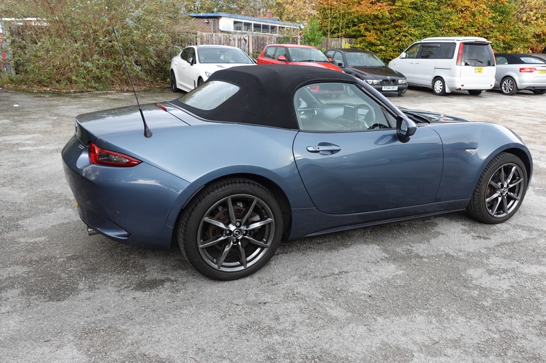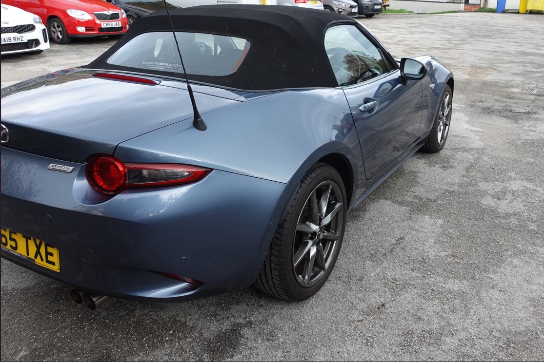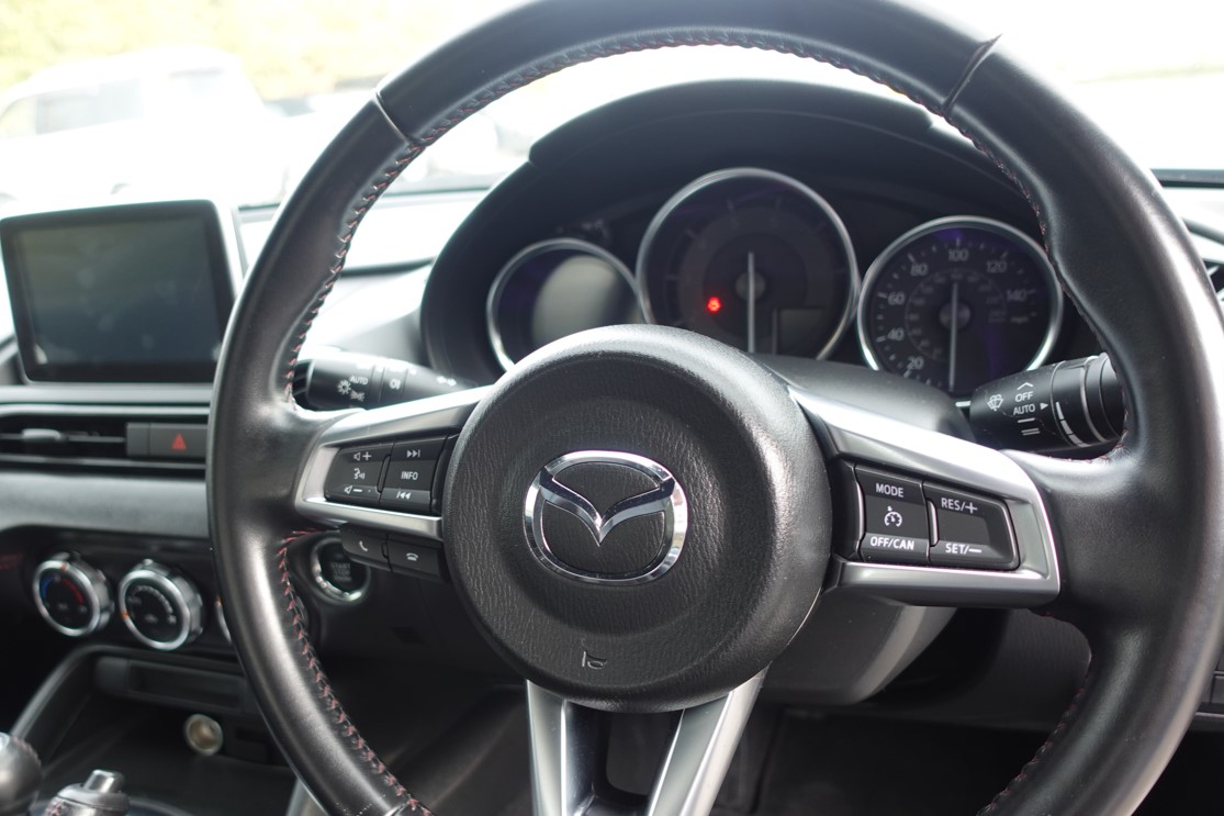 With only one owner from new and low mileage of just 32,804 miles, this 2015 Mazda MX-5 2.0L Petrol SKYACTIV-G Sport in Sport trim offers a compelling blend of performance and style. This Euro 6 compliant roadster is equipped with a range of features designed to enhance your driving experience, including an integrated Bluetooth system for seamless connectivity, smart keyless entry for added convenience, and rear parking sensors to assist with maneuvering. The inclusion of LED headlights and dusk-sensing automatic headlights ensures optimal visibility in all conditions., , This particular MX-5 benefits from a low insurance group, which could mean lower premiums compared to similar vehicles. The car's features combine to create a well-rounded package that is sure to appeal to those seeking an engaging and practical driving experience., 3 months warranty, 12 months MOT, Last serviced on 16/10/2024 at 30,828 miles, Full dealership history, Black Full leather interior, 2 seats, Blue, 1 owner, Upgrades - Leather - Black with Red Stitching, Standard Features - 12V Power Socket - Front, 17in Alloy Wheels - Bright Finish, 7in Colour Touch Screen Display, ABS - Anti Lock Braking System, AUX Socket, Adjustable Speed Limiter, Aha App and Stitcher App Integration, Air Conditioning - Automatic Climate Control, Airbags - Driver, Airbags - Front Passenger, Airbags - Front Passenger Deactivation System, Auto Dimming Rear View Mirror, Bluetooth Audio Streaming, Body Coloured Door Mirrors, Cruise Control, Cupholder - Front x2, DAB Radio, DHS - Deployable Hood System, DSC - Dynamic Stability Control, Dashboard Panel - Black Vinyl Leather, Deadlocking, Dusk Sensing Automatic Headlights, Electric Windows - Front, Electrically Adjustable-Heated Door Mirrors, Electronic Power Assisted Steering, Emergency Puncture Repair Kit, Engine Start-Stop Button, Exhaust Tailpipes - Twin, Exterior Temperature Gauge, Gear Knob - Leather, Handbrake - Leather Wrapped, Headlights - Adaptive Front Lighting System, Headlights - Automatic Levelling, Headlights - Coming-Leaving Home, Headlights - LED, Heated Glass Window, Hood - Black Premium Cloth, Immobiliser, Integrated Bluetooth System, Interior Upper Door Trim - Body Coloured, LED Daytime Running Lights, LSD - Limited Slip Differential, Lane Departure Warning System, Multimedia Commander, Multimedia System, Pollen Filter, Premium BOSE Surround Sound System, Radio-CD, Rain-Sensing Front Wipers, Rear Brake Light - High Mounted, Rear Parking Sensors, Remote Boot Release, Seatbelt Reminder - Front with Audible Warning, Seats - Drivers Manual Slide-Recline and Tilt Adjustment, Seats - Front Heated, Seats - Front Passenger Manual Slide and Recline Adjustment, Side Airbags, Smart Keyless Entry, Speakers x9, Sport Suspension - Bilstein Damper, Steering Wheel - Leather, Steering Wheel - Mounted Audio and Bluetooth Controls, Storage - Rear Centre Box with Lockable Lid, Style Bar Cladding - Piano Black, TCS - Traction Control System, Thatcham Catergory 1 Alarm, Trip Computer, Tyre Pressure Monitoring System, USB - iPod Connectivity x2, Voice Control for Phone, Windblocker - Standard, Buy from a long established MX5 and Small car specialist in the North West, £13,490