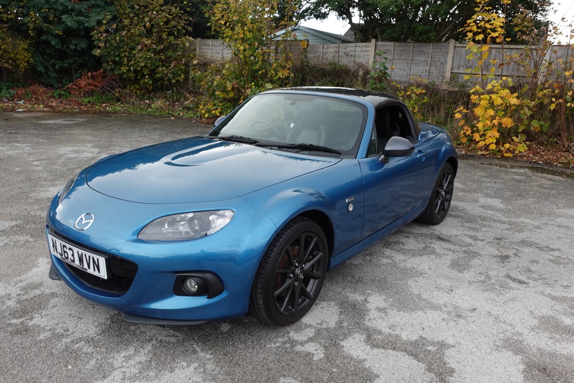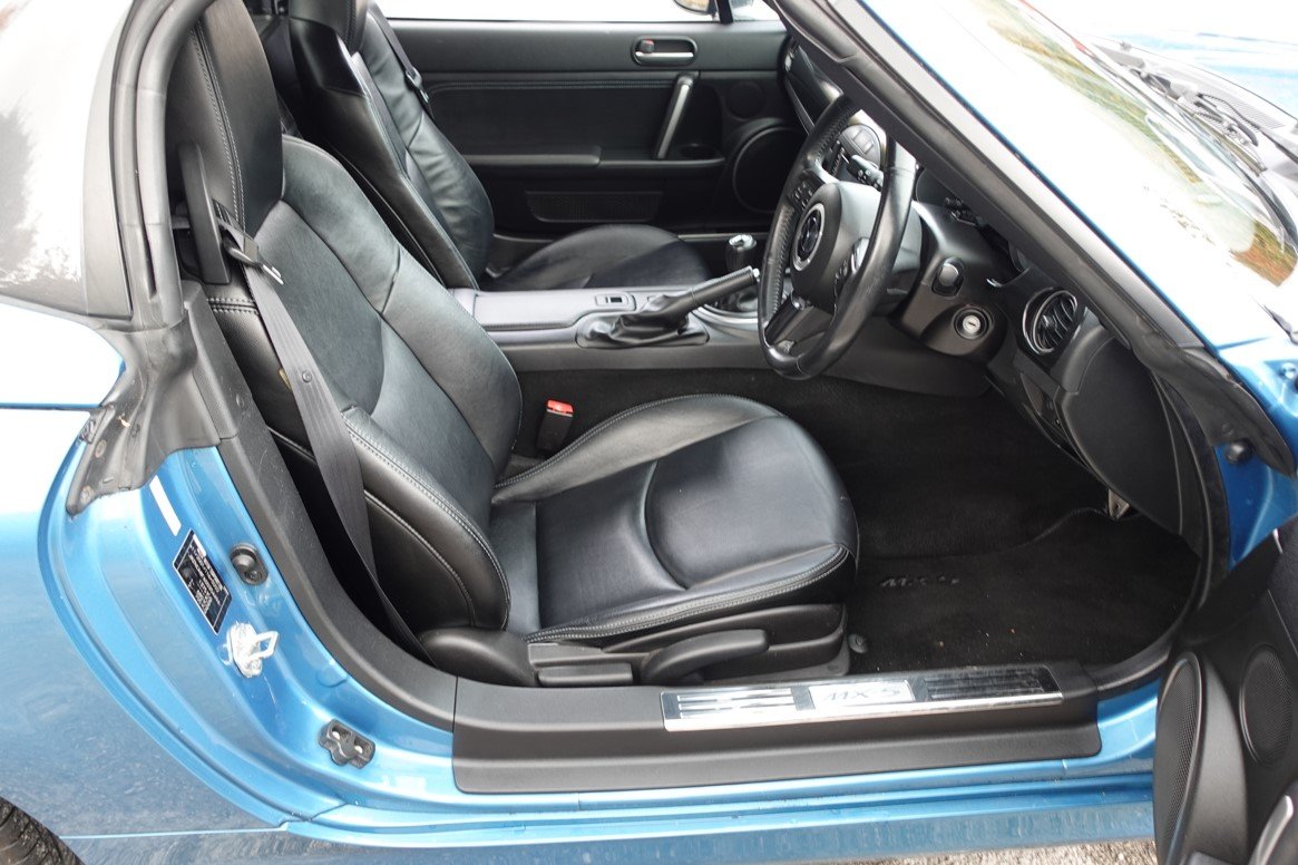 Finished in Aquatic blue with a graphite grey roof, this model is the 2.0 Sport Graphite Edition Coupe. It has heated grey leather seats, 6 speed gearbox, climate control air conditioning, traction control, central locking with alarm, power steering, 17" alloy wheels, navigation stereo system with bluetooth phone and electric folding solid roof (which stows behind the seats so does not intrude on boot space). It has covered 30000 miles with service history in the hands of just three owners. We take any vehicle in part exchange, MX5 or other makes., Buy from a long established MX5 and Small car specialist in the North West.